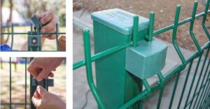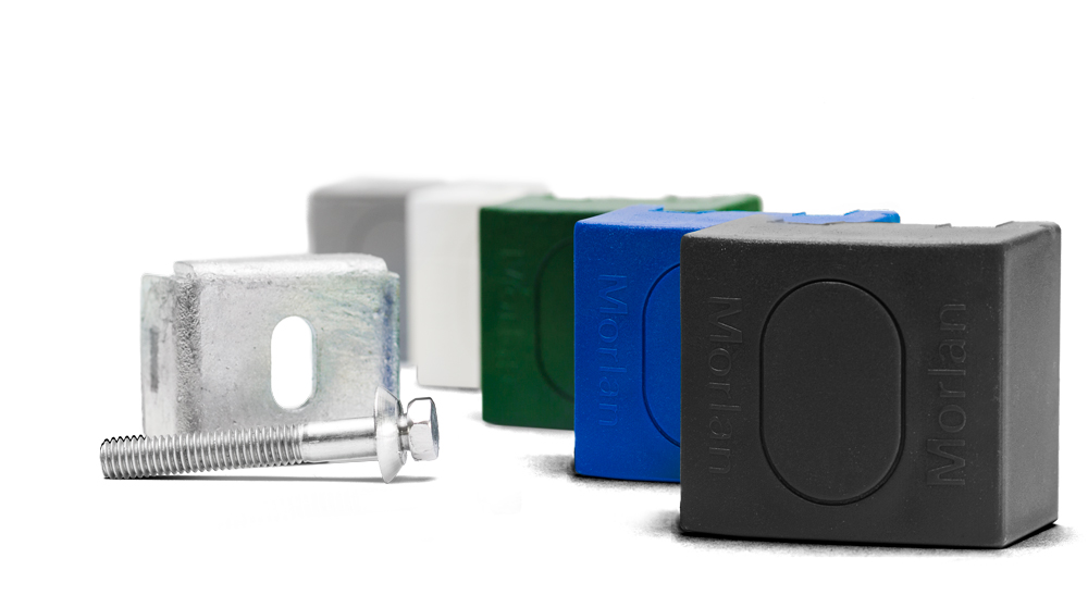 Já na extensão longínqua do poste, para fixação do Gradil da Morlan, são utilizados os fixadores de segurança que são fixados com parafusos brocantes galvanizados, variando na quantidade de 03 (três) à 08 (oito), de acordo com a altura escolhida pelo cliente.