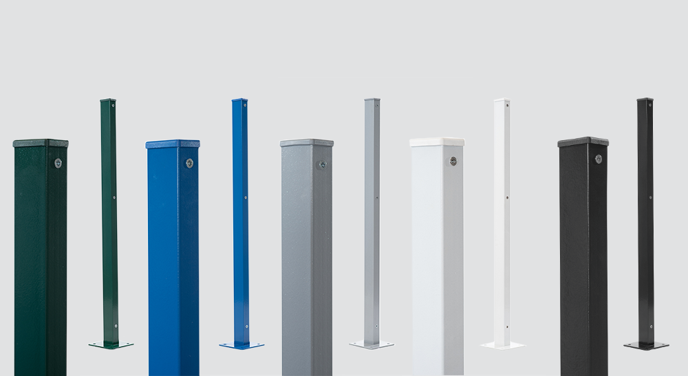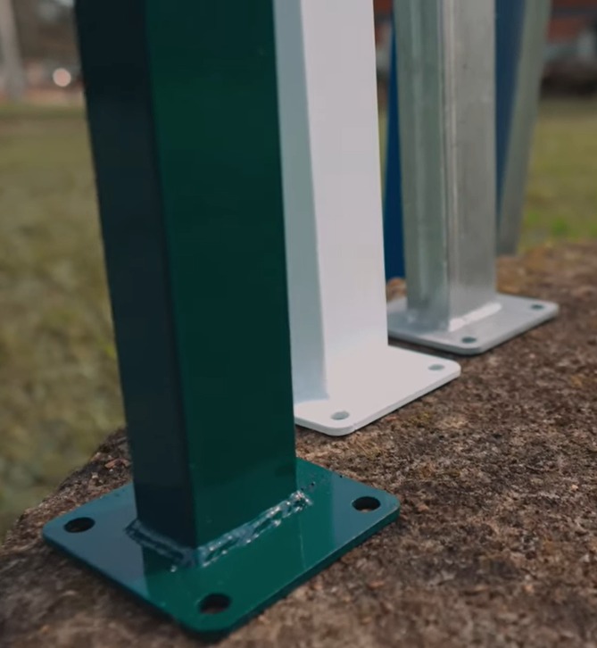 Os Postes são fabricados em tubos retangulares de seções de 40×60mm, com espessura da parede de 1,25 ou 1,50mm. E, com tampa superior produzida em PVC, igualmente, com seção de 40×60mm, instalados obrigatoriamente, na parte superior de cada poste, para evitar seu deterioramento.