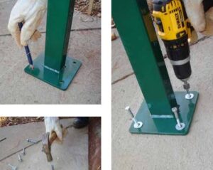 Exceto os postes específicos de chumbamento em alvenaria, os postes de ferro Zincado com base, são fixados com 04 (quatro) parafusos parabolt, a depender do modelo escolhido pelo cliente, para fixação do poste junto a base.