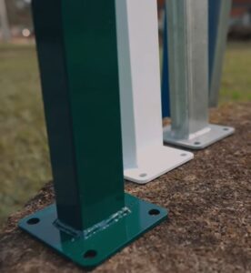 Na Telas Eggert, você encontra os postes nas opções de chumbamento padrão na estrutura de alvenaria de 0,50m e/ou na opção de base reta ou em formato de ‘L’.